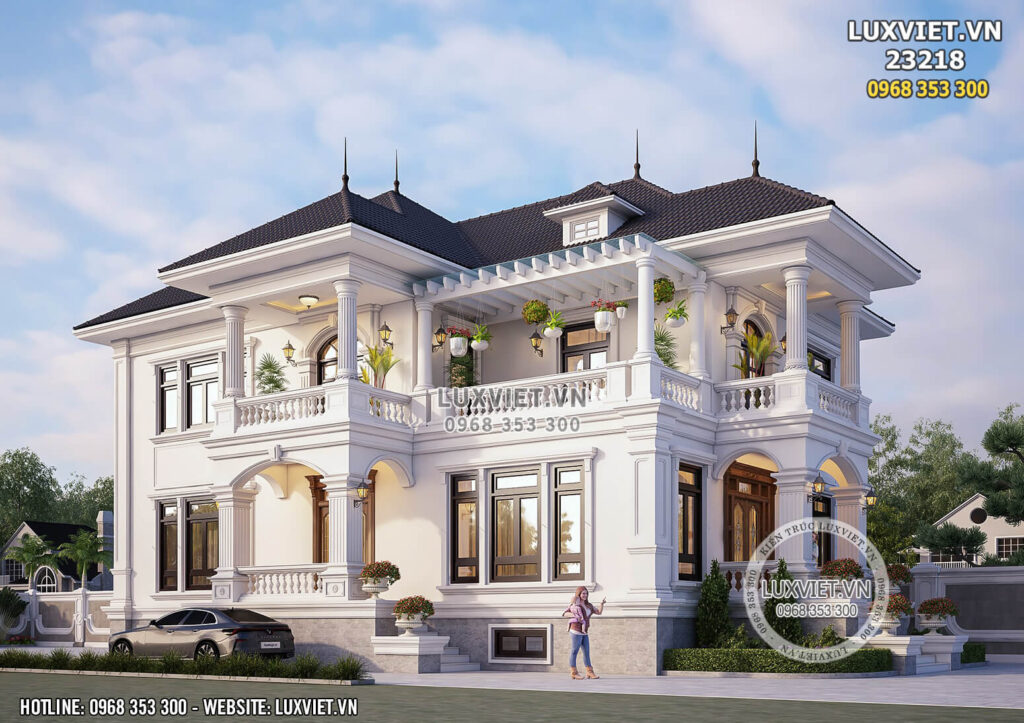 - Mẫu thiết kế nhà phố có tầng hầm để xe kiến trúc tân cổ điển